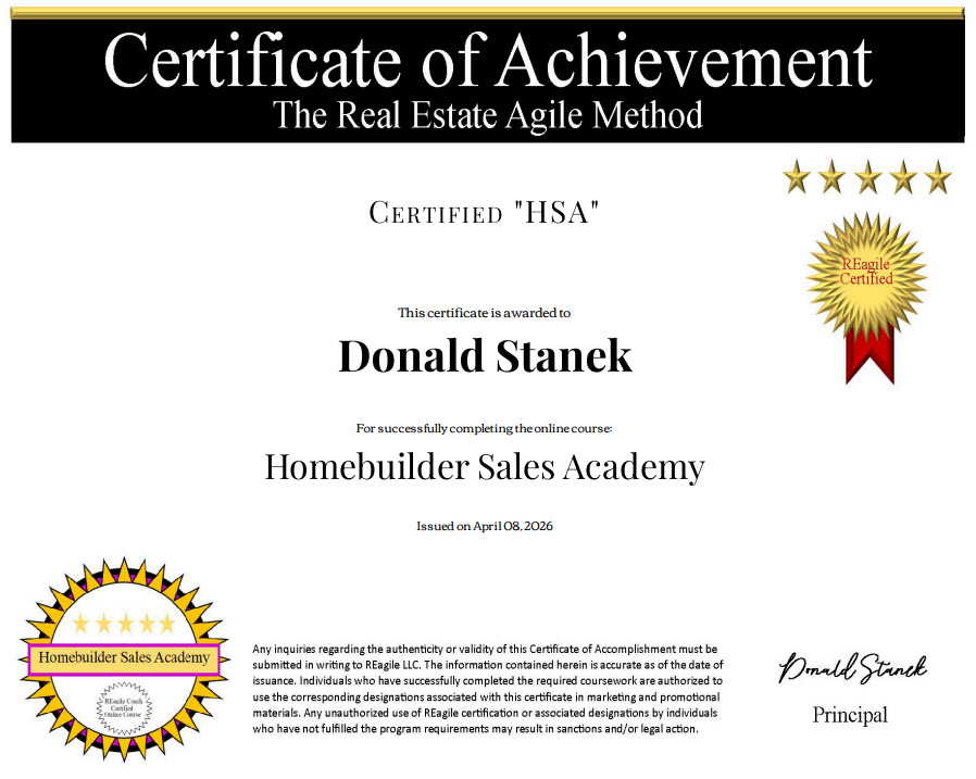 The Homebuilding Industry Gold Standard for Selling Professionals.