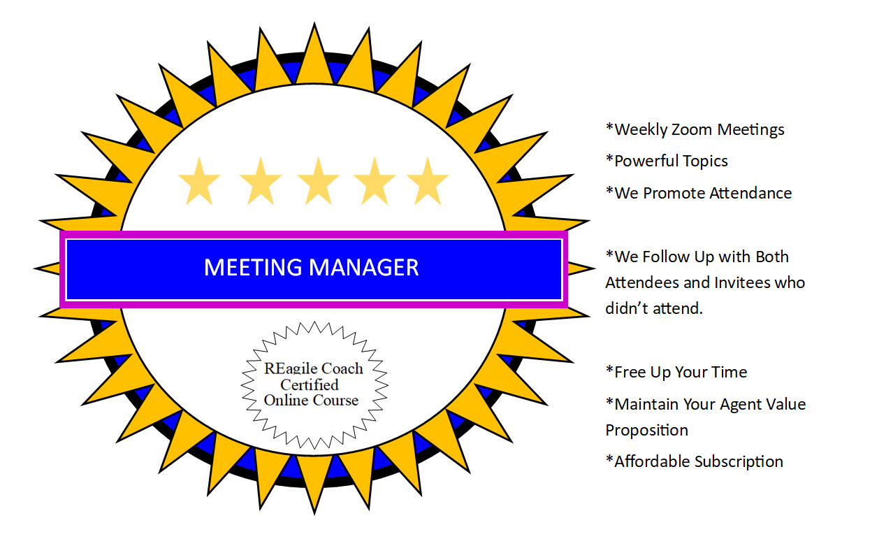 REagile Coach (IS NOT) a real estate or mortgage brokerage company. Real Estate and Mortgage Agents must follow all laws, rules, and guidelines set forth by all entities that oversee and govern their industry-specific licenses. Furthermore, Realtors are members of the National Association of Realtors and are bound by that association's code of conduct and ethics. REagile is not responsible for the actions of Customers who engage in unlawful acts or unethical behavior. REagile coaches may be licensed but in no way are they sponsoring brokers or supervising managers to the Customer. The Customers must address issues that require a license with their managing real estate or mortgage sponsor/employer. All sales are final, and REagile maintains a strict no-refund policy. Individual results will vary based on Customer participation.